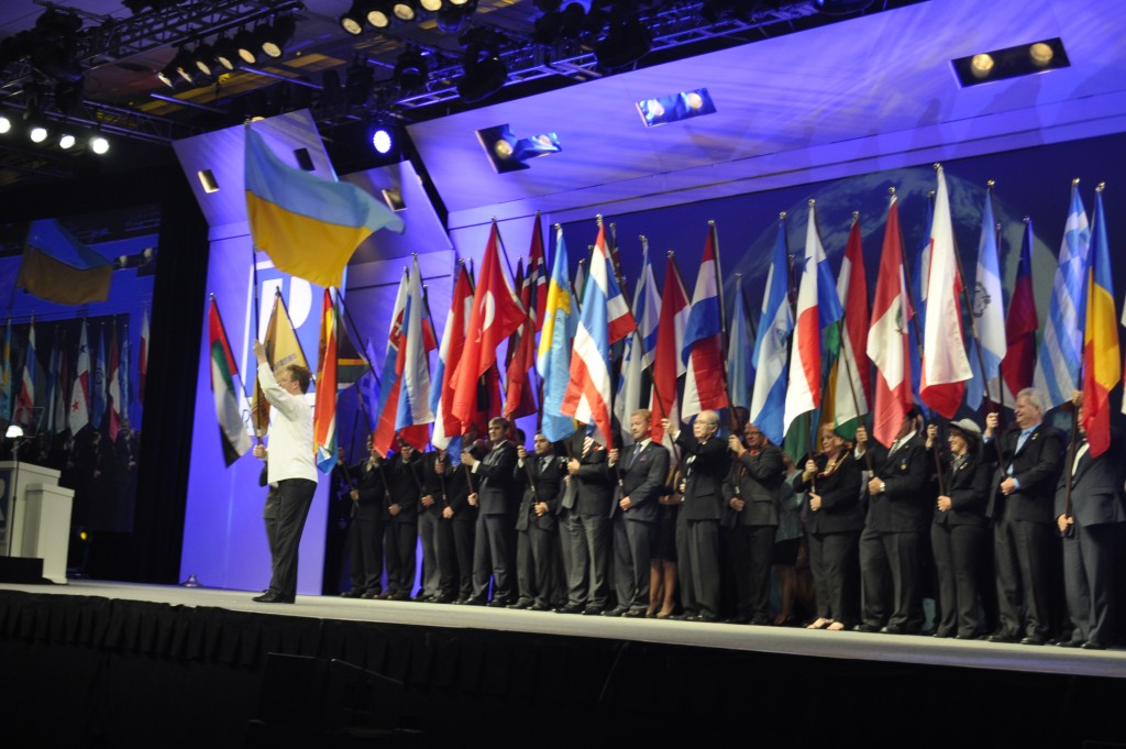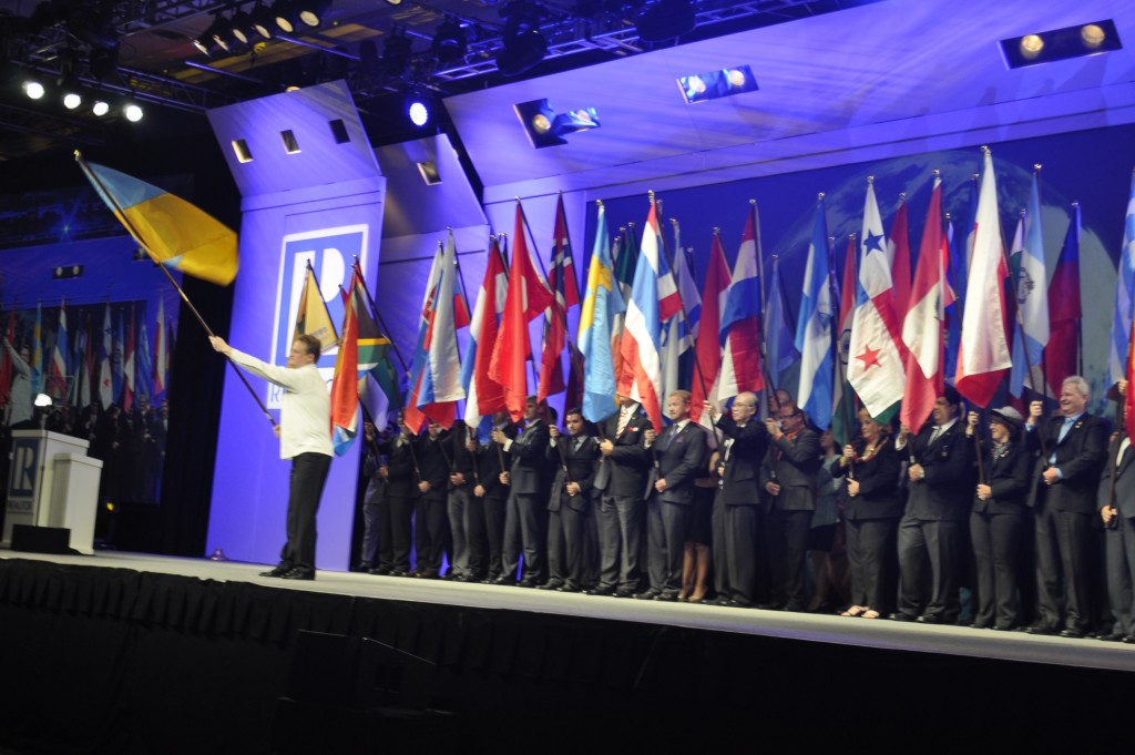 На торжественном закрытии конференции (церемония с выносом флагов), наша «неофициальная» делегация заметно выделялась среди всех. Мы были одеты в национальные костюмы с национальной символикой, у нас с собой был флаг Украины, что сильно привлекло внимание всех участников конференции именно к нашей стране. В целом мы испытывали гордость за Украину и что мы представляем риэлторов нашей страны в Америке.