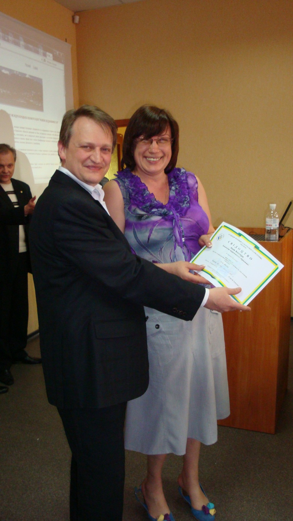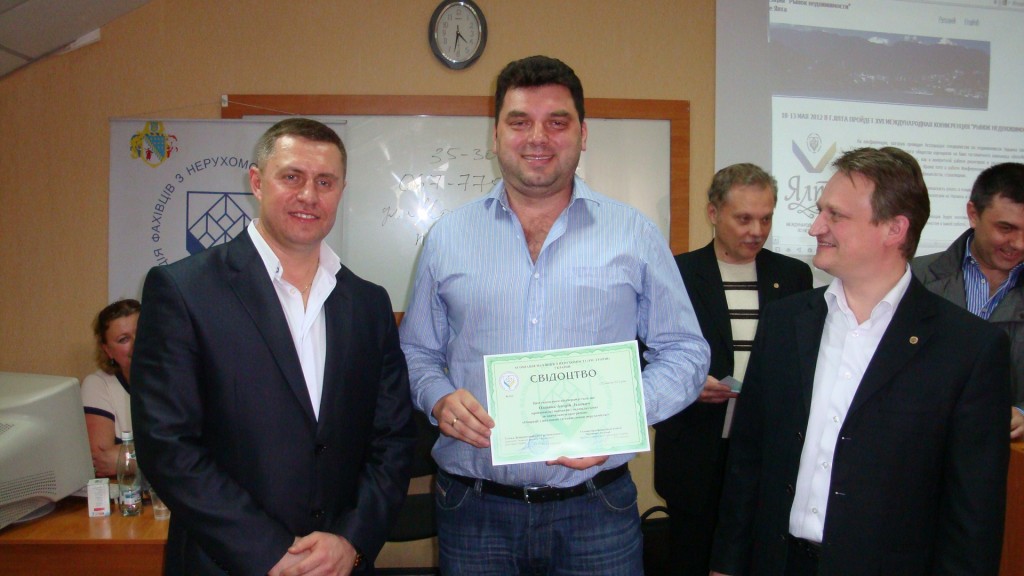 В завершении, в непринужденной и комфортной обстановке , всем слушателям вручили свидетельство о прохождении курсов «Операции с жилой и нежилой недвижимостью», а вновь вступившим в АСНУ - свидетельство и значок члена Ассоциации.