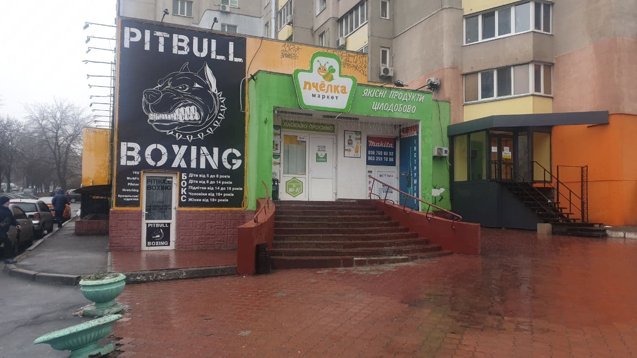 В будинку супермаркет Пчілка, спортивний клуб.