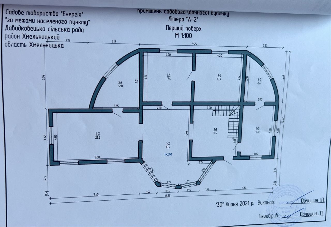 Продам цікавий комплекс в передмісті Хмельницького (Хмельницька територіальна громада). с.Давидківці, СТ "Енергія". Загальна площа будівель: 506 кв.м. Вартість: 150000$ + витрати на переоформлення Знаходиться при дорозі, фасад. Складається з садового будинку (293,2/87,1/59,3м2), має повноцінних 2 поверхи, з них: на 1 поверсі велика кухня/їдальня, санвузол, гардероб, пральня (висота поверху 2,9м), на 2 поверсі хол +3 окремі кімнати, 2 санвузли та гардероб (висота поверху 2,5м). Стан - коробка (з/бетон, пеноблоки, утеплена пінопластом, поштукатурено, дах - металочерепиця, перекриття - з/бетон) Окремо при дорозі нежитлове приміщення/госп.будівля (212,7м2). З/бетон, перекрито з/бетонними плитами та рубероїдом. Зроблені внутрішні та зовнішні роботи. Має ворота ролетного типу, великі фасадні вікна з подвійним склопакетом, захисні ролети на вікнах та дверях (висота будівлі 3,1м). Від дороги перед приміщенням встелена бруківка. Можна використовувати під любий вид діяльності. Здане в екплуатацію, отримано право власності. Ділянка рівна 6 соток (24*25м), кад.№: 6825082400:02:017:2721, Призначення: 01.05 - для індивідуального садівництва. По комунікаціям: вода - колодязь з насосом, каналізація - септик, світло - 380V, 15кВт, окрема лінія. Газ не заводився. Можливий адекватний торг. Показ за попередньою домовленістю.