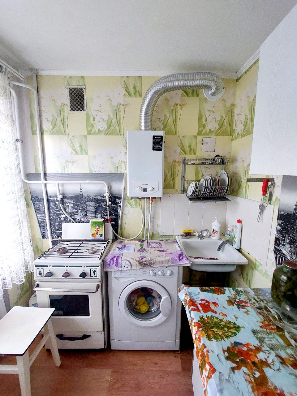 Є газовий водонагрівач,в квартирі є меблі та техніка,один диван