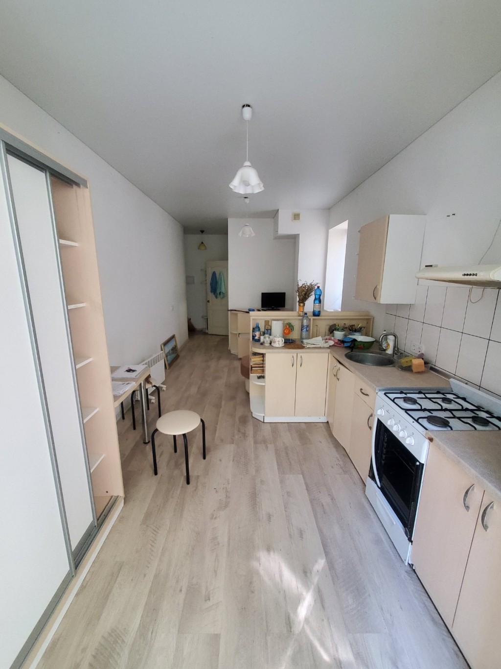 Кухня-студія з зоною спальні та окремим санвузлом.