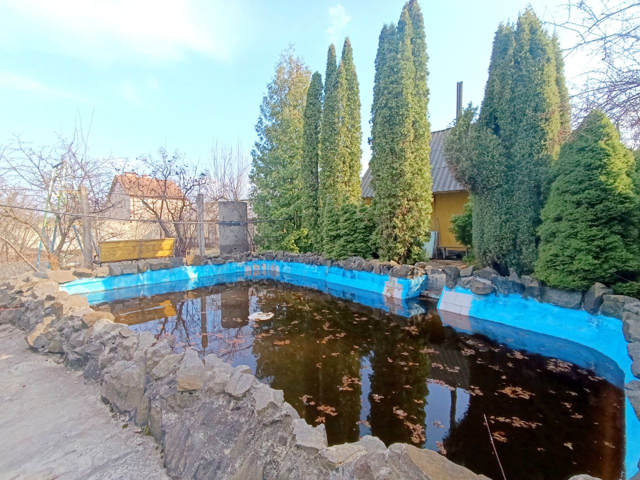 На ділянці є басейн, побудована не велика сауна, альтанка і теплиця. Стежки з тротуарної плитки і бетону. Сад з фруктових плодовитих дерев.