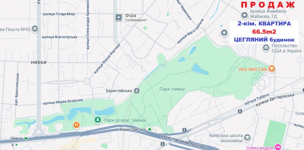 • метро Сирець або Берестейська в 15-20 хвилинах ходьби