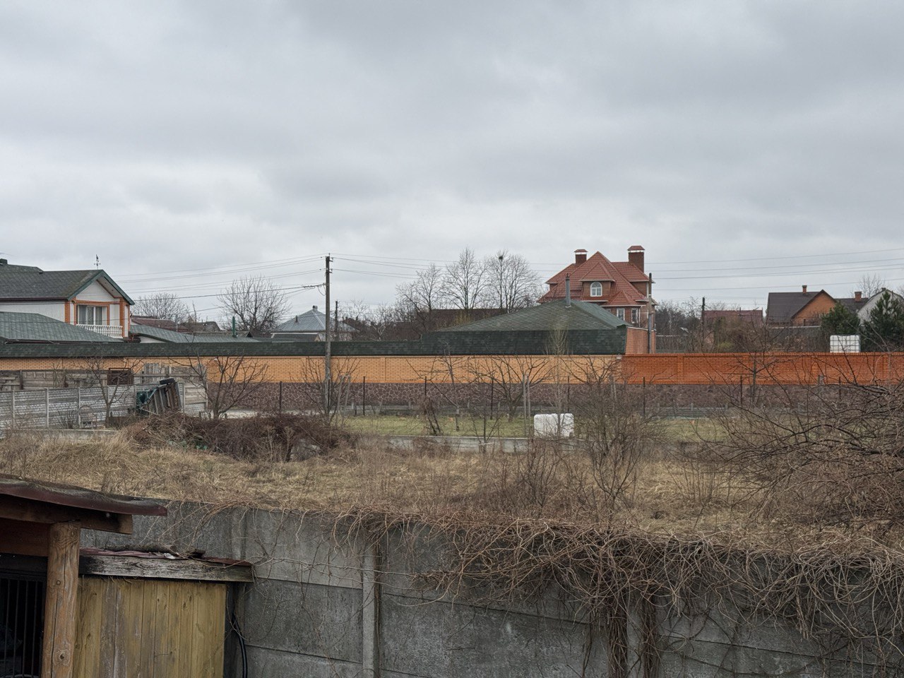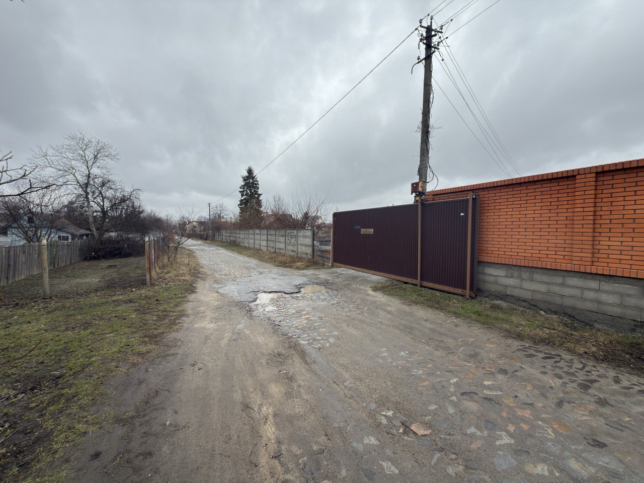 Ділянка складається з 3 ділянок (продаються разом), рівна, знаходиться на закритій вулиці, на вулиці 3 будинки, відкатні, автоматичні ворота, огороджена бетонним забором.