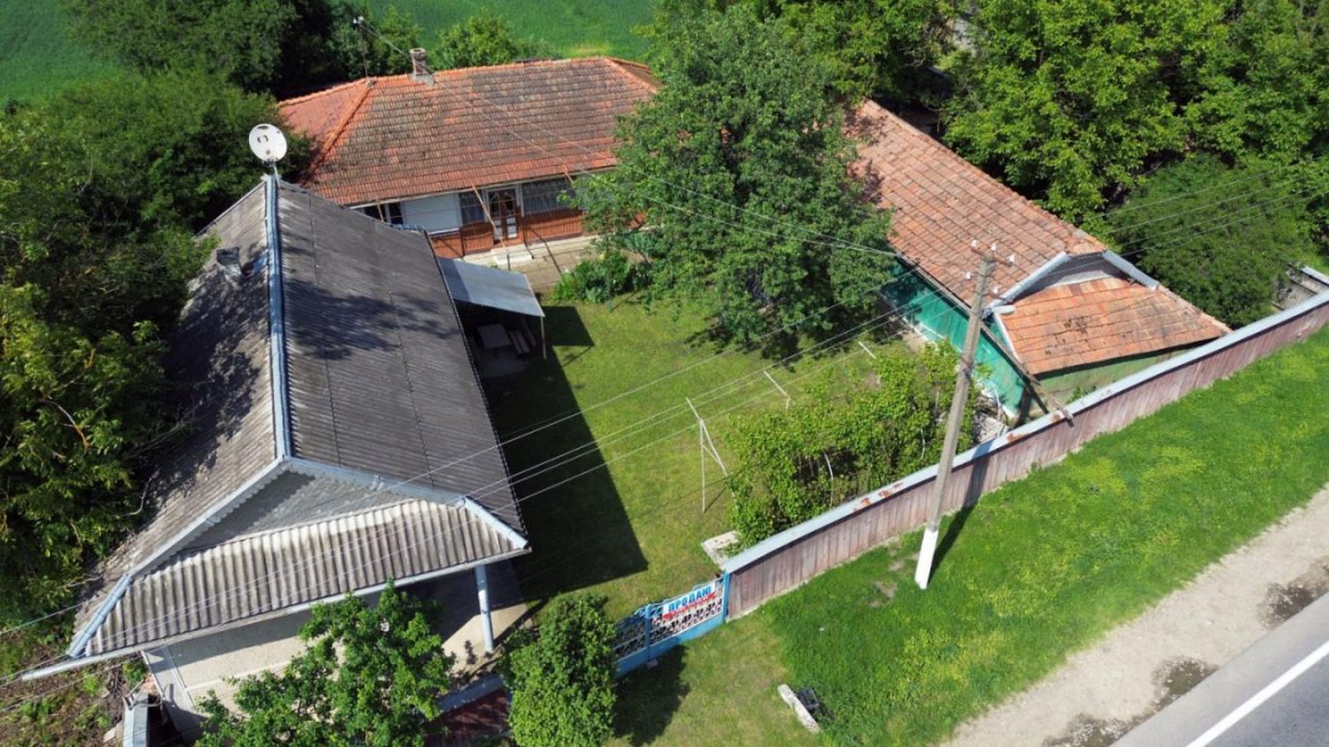 На території розташовані: одноповерховий дерев'яний будинок, площею 84 кв.м., літня кухня, сарай, підвал. Накриття: черепиця/шифер.