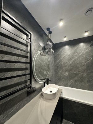 ОСНАЩЕННЯ КВАРТИРИ . всі корпусні та м’які меблі Frankoff . багато різних сценаріїв освітлення . декоративна штукатурка у всіх приміщеннях . ексклюзивна акцентна стіна під камінь, виконана вручну художниками та штукатурами . біокамін . вбудована побутова техніка . кондиціонер