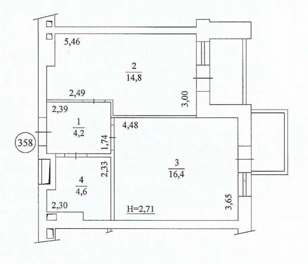 Жила площа: 16.4 кв.м