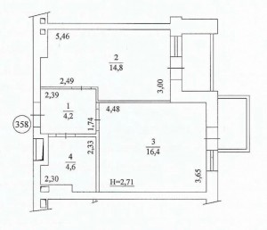 Загальна площа: 43.7 кв.м