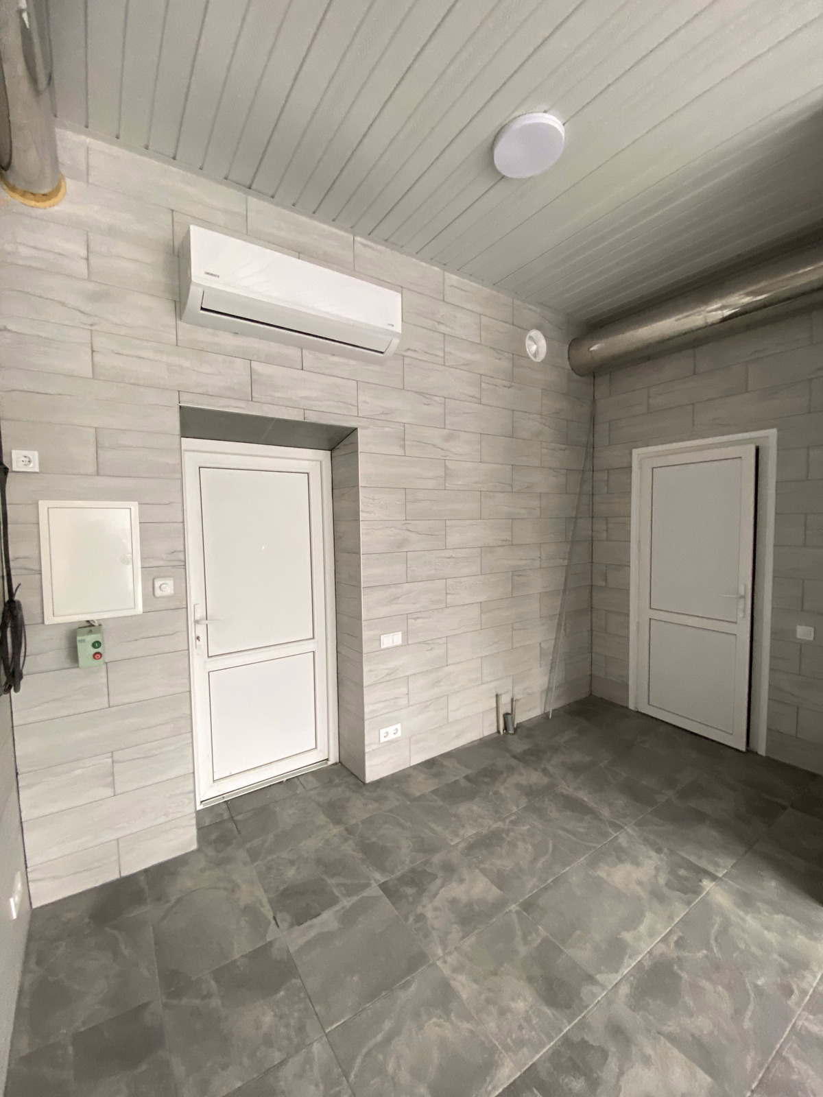 Перший поверх - зроблений косметичний ремонт. Готовий для використання і роботи. Другий поверх під ремонт. Складається із великої кімнати, санвузла, душової кімнати. На другому поверсі встановлений потужний кондиціонер. Потужність електроенергії - 16 кВт., три фази.