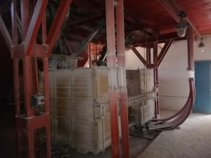 Млин має 3 помольних станки, на кожному з них по чотири вальці. Довжина одного вальця становить 57 см.