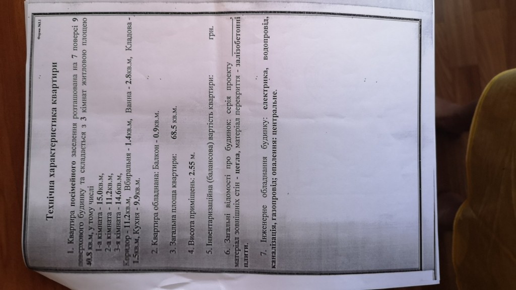3 кімн., площа 60/30/9, поверх 1/1