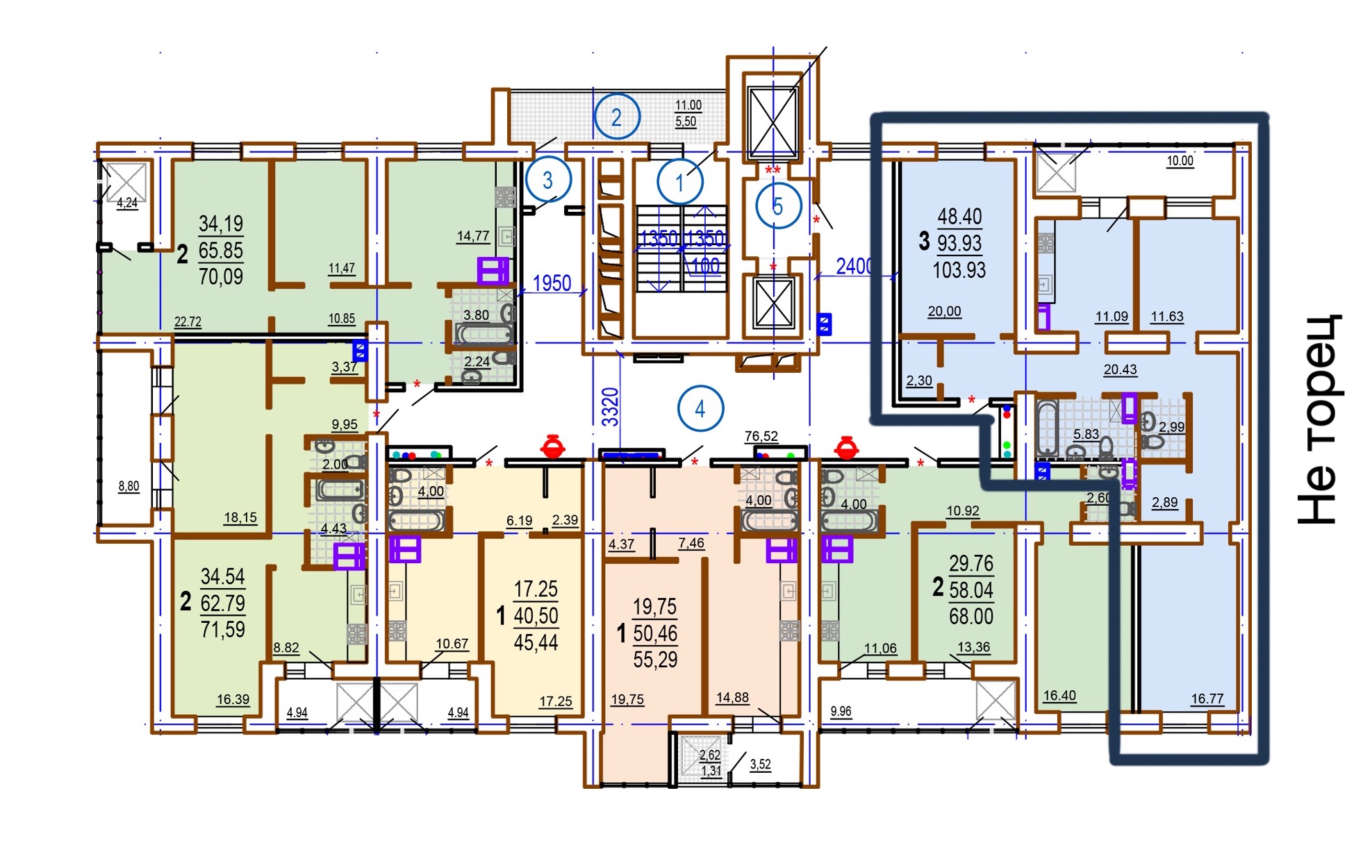 • встановлені перегородки як зазначено на плані;