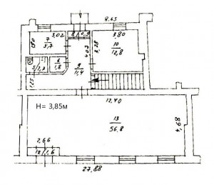Аренда торгово-офисного помещения в Центре (р-н остановки Шевченко) по ул. Европейской, 24/42, общей площадью 93,3 м2 на Красной Линии. Характеристики помещения: - 1 этаж общей площадью 93,3 м2; -- торговый зал- 56,8 м2; -- 2 кабинета (5,7 м2+12,8 м2); -- санузел -- фасадная часть здания; -- высота помещения Н= 3,85 м.; -- коммуникации- централизованные; -- пожарная и охранная сигнализации; -- система кондиционирования воздуха