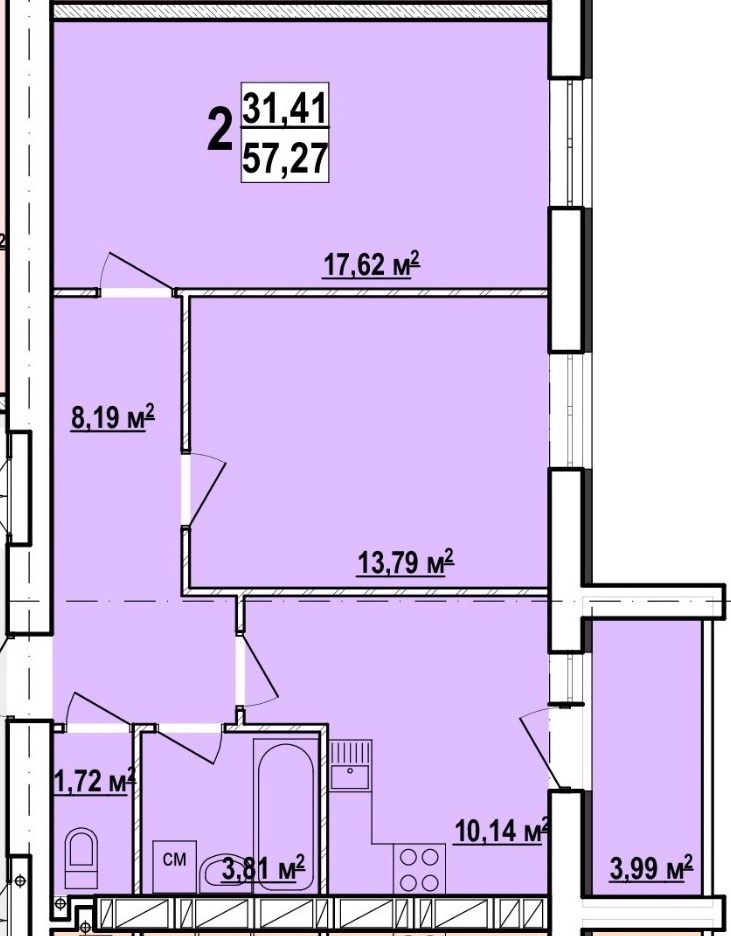 Загальна площа: 57 кв.м